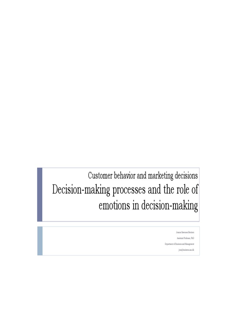 Implications of Findings for Supporting Consumer Health Care Decisions Taken together, the findings from consumer decision research and the lessons from advertising ... Access Doc